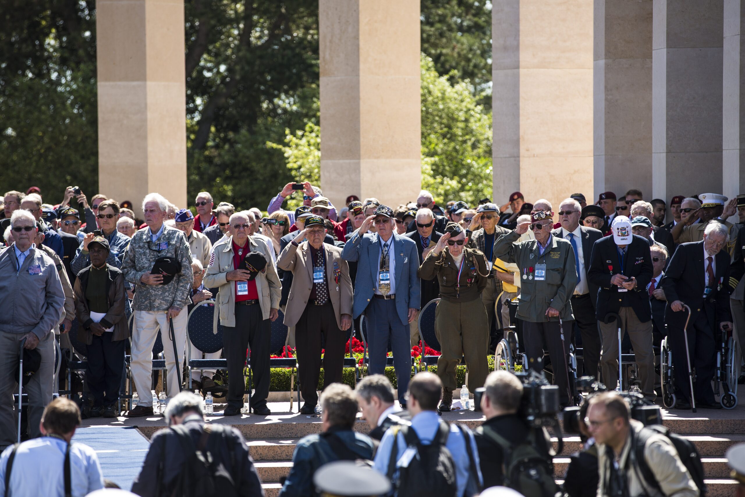 World War II veterans stand during the ceremony for the 70th anniversary of D-Day at Normandy American Cemetery.