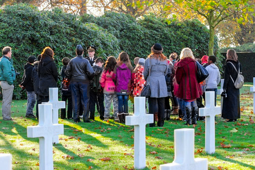 Local students receive a tour of Netherlands American Cemetery after the 2013 Veterans Day Ceremony.