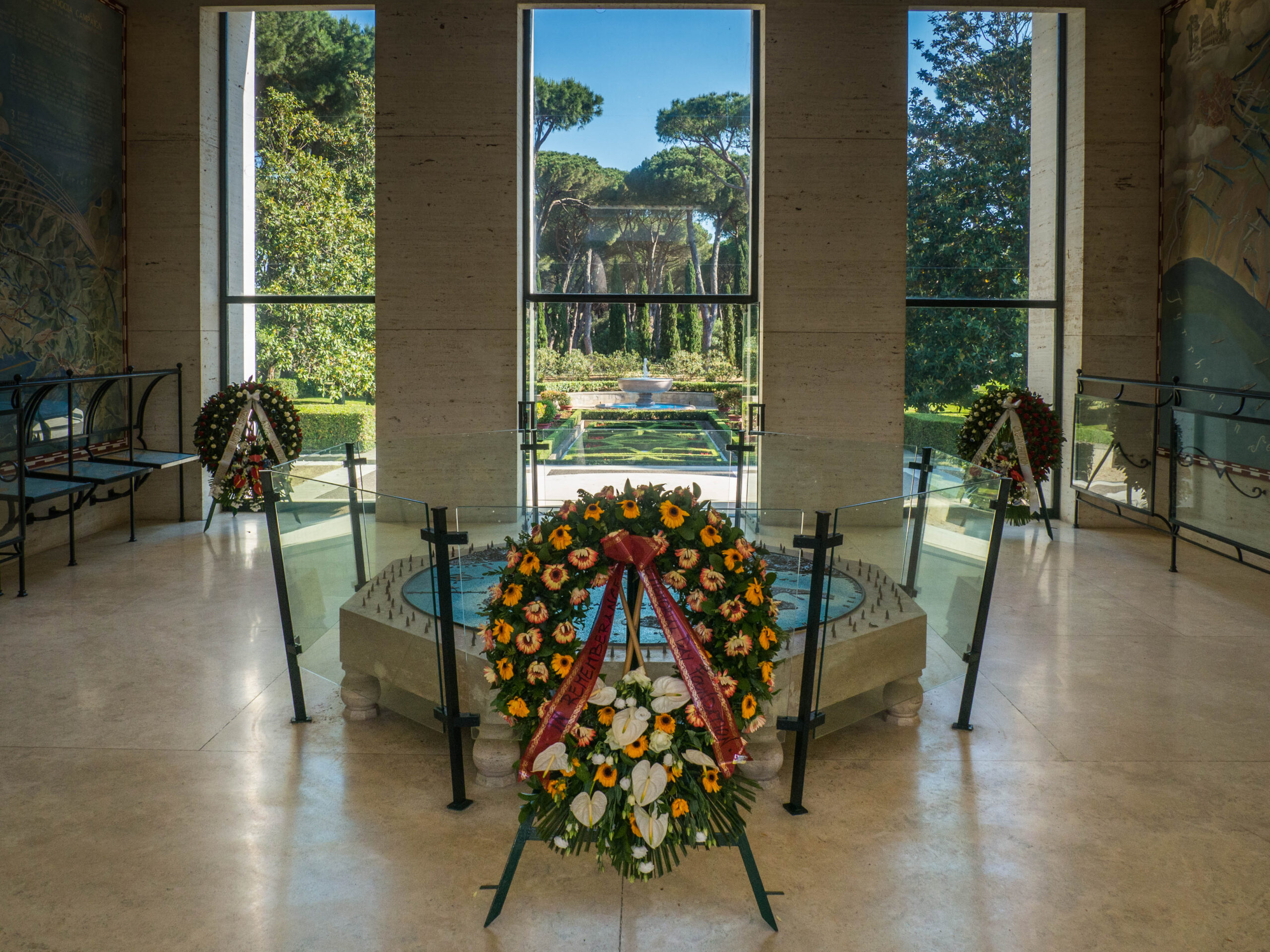Sicily-Rome American Cemetery is the final resting place for approximately 7,900 American military members, most of whom died during the liberation of Sicily, in the landings in the Salerno area and the fighting northward, in the landings at Anzio Beach, and the air and naval support throughout the region. Additionally, more than 3,000 names of those who went missing in these operations are etched in the white marble walls of the cemetery’s chapel.