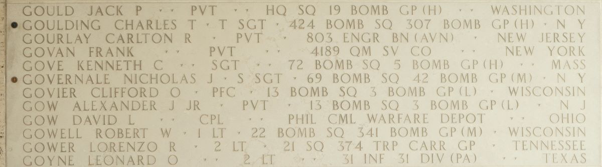 U.S. Army Air Forces Staff Sgt. Nicholas J. Governale, 22, of Brooklyn, New York, killed during World War II, was accounted for May 15, 2025. In the summer of 1943, Governale was a member of 69th Bombardment Squadron, 42d Bombardment Group (Medium). He was killed on July 10 when his North American B-25C-1 Mitchell medium bomber crashed on takeoff from Carney Field, Guadalcanal, Solomon Islands.