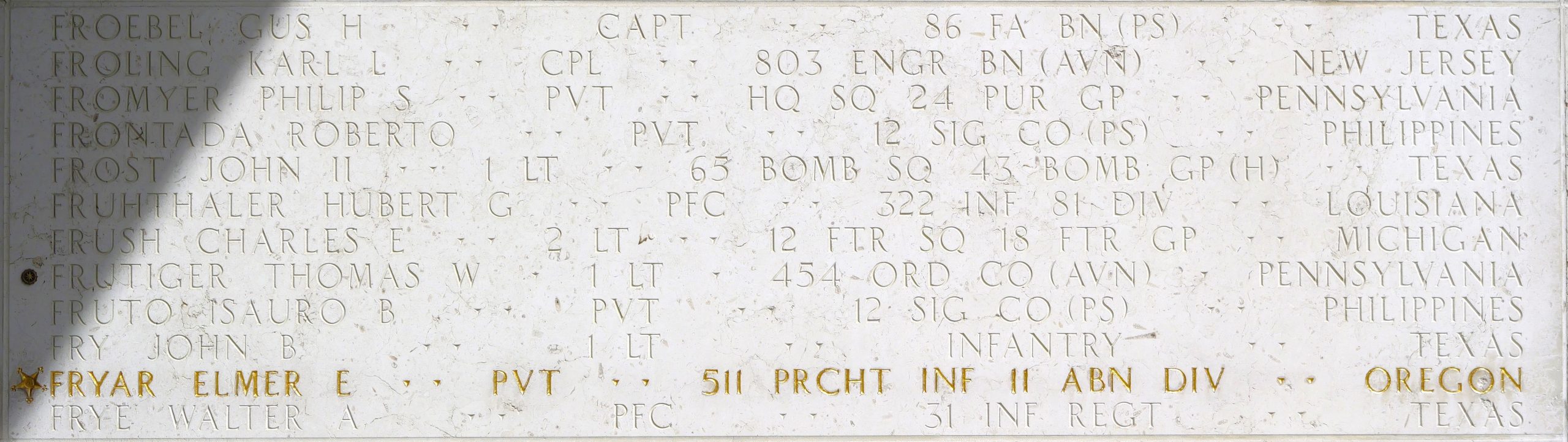 U.S. Army 1st Lt. Thomas W. Frutiger, 33, killed during World War II, was accounted for Nov. 19, 2025. In 1942, Frutiger was assigned to 454th Ordnance Company on the Bataan Peninsula in the Philippines.