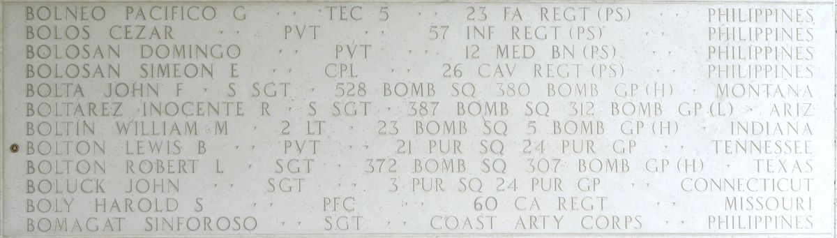 U.S. Army Pvt. Lewis B. Bolton, 27, who was captured and died as a prisoner of war during World War II, was accounted for June 27, 2025. In late 1941, Bolton was a member of 21st Pursuit Squadron, 24th Pursuit Group, when Japanese forces invaded the Philippine Islands in December.