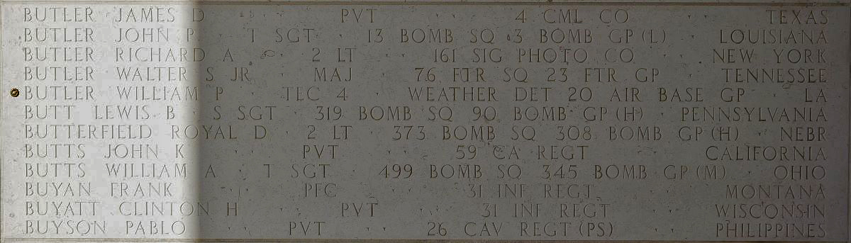 U.S. Army Air Forces Technician 4th Grade William P. Butler, 22, who was captured and died as a prisoner of war during World War II, was accounted for Dec. 22, 2025. In late 1941, Butler was a member of 5th Air Corps Squadron, Weather (Regional Control), when Japanese forces invaded the Philippine Islands in December.