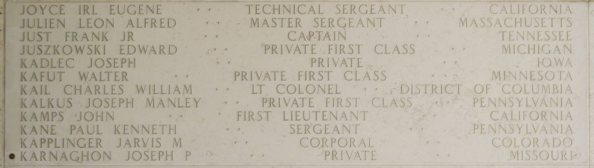 U.S. Marine Corps Pvt. Joseph P. Karnaghon, 21, killed during World War II, was accounted for Jan. 28. In the fall of 1942, Karnaghon was assigned to Company B, 1st Battalion, 7th Marines, 1st Marine Division, Fleet Marine Force.