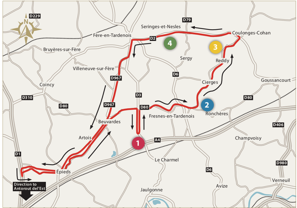 This World War I Battlefield Tour includes Google Maps links at each stop. Travel along virtually or map the full route and take a drive along this historic battlefield route in France.