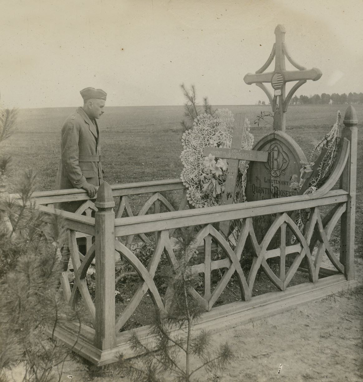 The crash site was in the field 915 meters east of the fountain. Quentin was buried with honors by the German Army at the site of his crash, in a well-attended funeral. After they took Chamery, Allied soldiers flocked to the gravesite. In 1955, Quentin’s remains were moved to the Normandy American Cemetery to lie by those of his brother, Brig. Gen. Theodore Roosevelt Jr. Five days after his brother’s death, Theodore was wounded near Soissons. He would later die in World War II during the Normandy campaign in July 1944.