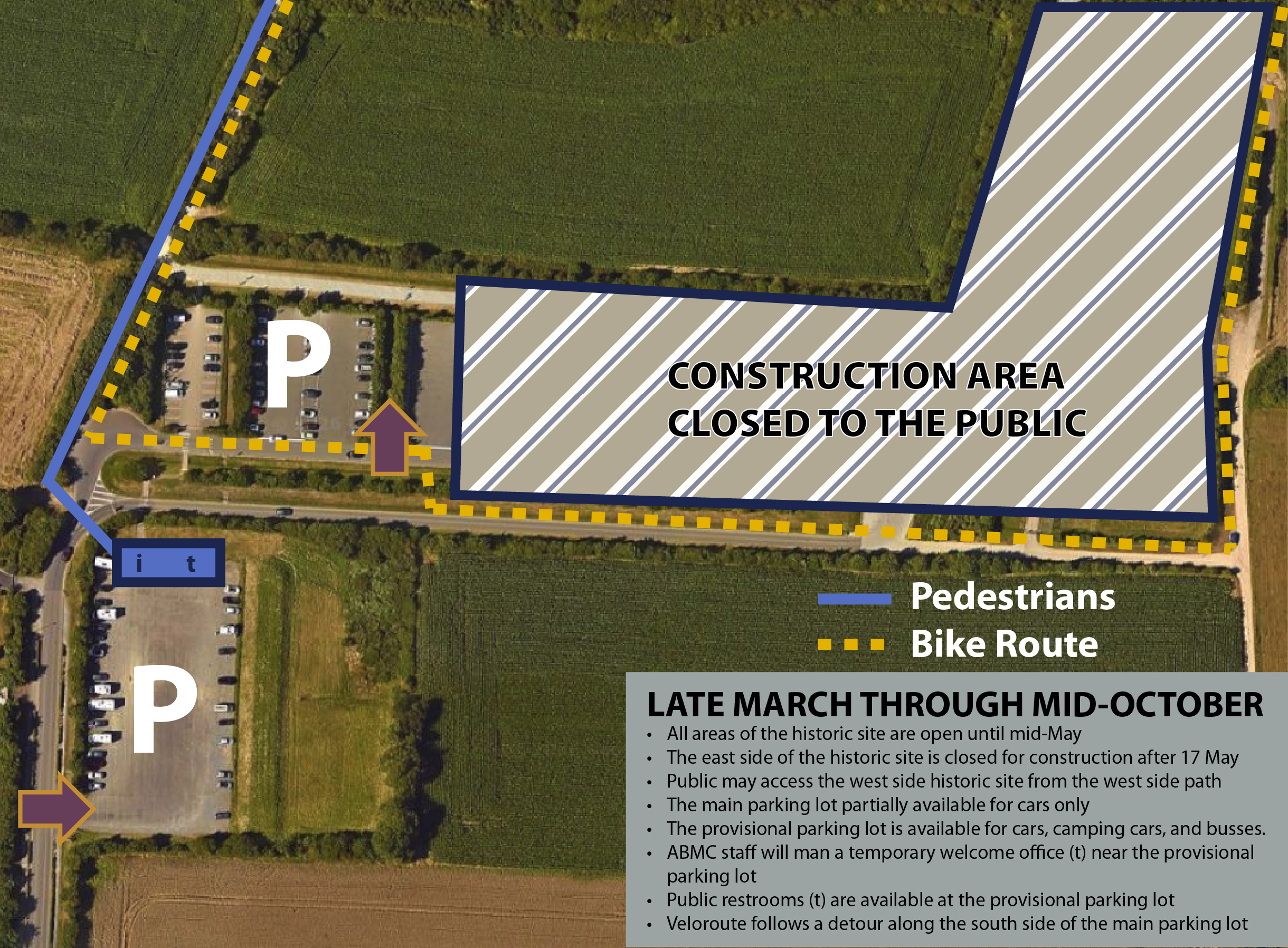 While ABMC is committed to maintaining access during the work, visitors should note the following changes: