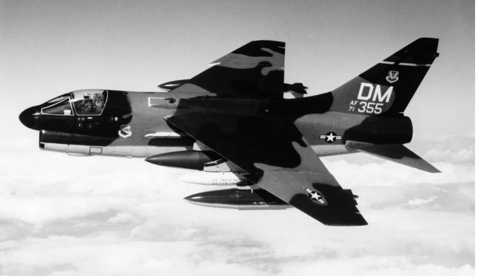 An LTV A-7D Corsair from Davis-Monthan AFB in flight. Photograph. 1972-1973. National Museum of the Air Force. https://tucson.com/news/retrotucson/photos-aircraft-over-tucson-through-the-years/collection_c2a41580-8aac-11e8-9ca8-137228095f74.html#9.