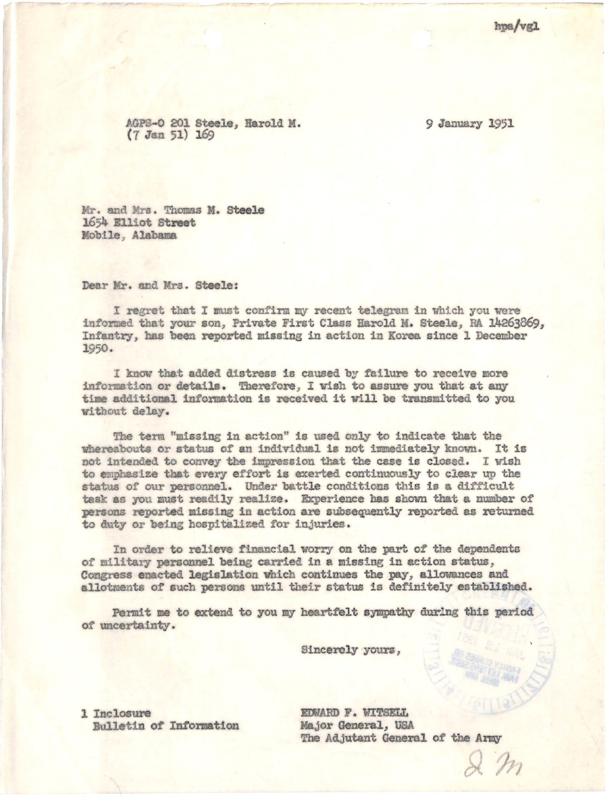 Harold Matthew Steele. Individual Deceased Personnel File. National Archives and Records Administration – St. Louis.