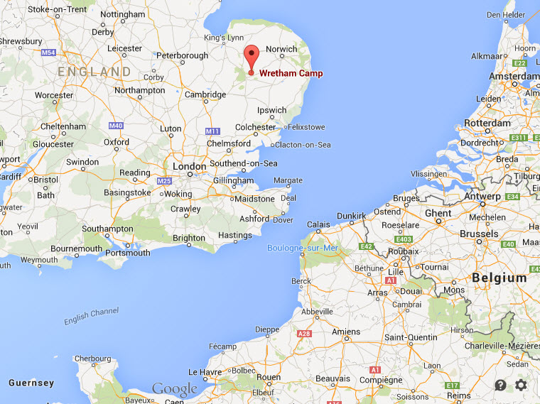 Just a few short months after his wedding, Simmons’s squadron readied to leave for Europe. Once staged at Camp Kilmer, New Jersey, in late September 1943, the Army no longer allowed service members to telephone or contact anyone outside of the camp, and all of his mail was censored. He finally boarded the Argentina, an army troop transport ship, with 7,000 other men and crossed the Atlantic Ocean bound for the U.K. Ten days later, they arrived in Liverpool, England, and boarded trains bound eastward, beyond London. The ultimate destination of Simmons’s squadron was Wretham Hall, a 52-room estate turned into barracks near the U.S. Army Airfield Station Number 133, just 90 miles northeast of London.
