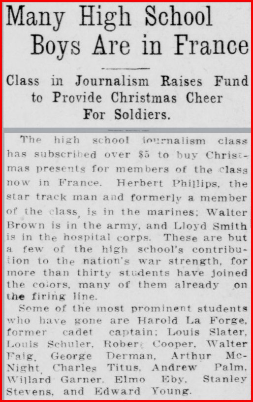 “Many High School Boys Are in France” The Sacramento Daily Union [Sacramento, CA], November 15, 1917. https://cdnc.ucr.edu/?a=d&d=SDU19171115.2.141&srpos=1&e=——191-en–20-SDU-1–txt-txIN-%22Louis+Schuler%22——-.