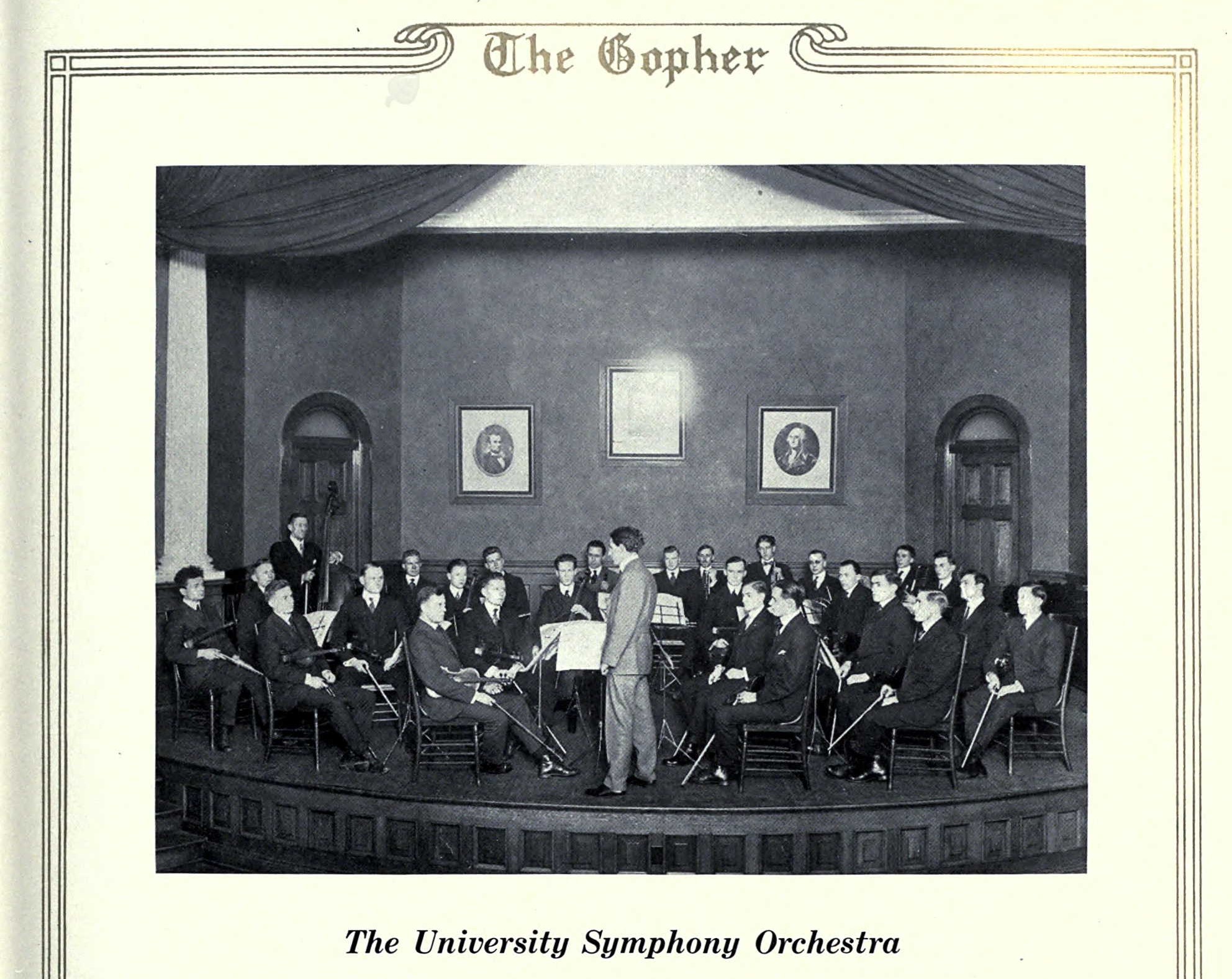 University Symphony Orchestra, University of Minnesota Yearbook, 1916. U.S., School Yearbooks, 1900-1990. Digital Images. ancestry.com.
