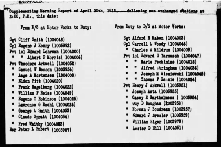 Records indicate that Edward Bresler was transferred from active duty to “D/S at Motor Works” in April 1918, suggesting he played a role in vehicle maintenance or transportation operations.