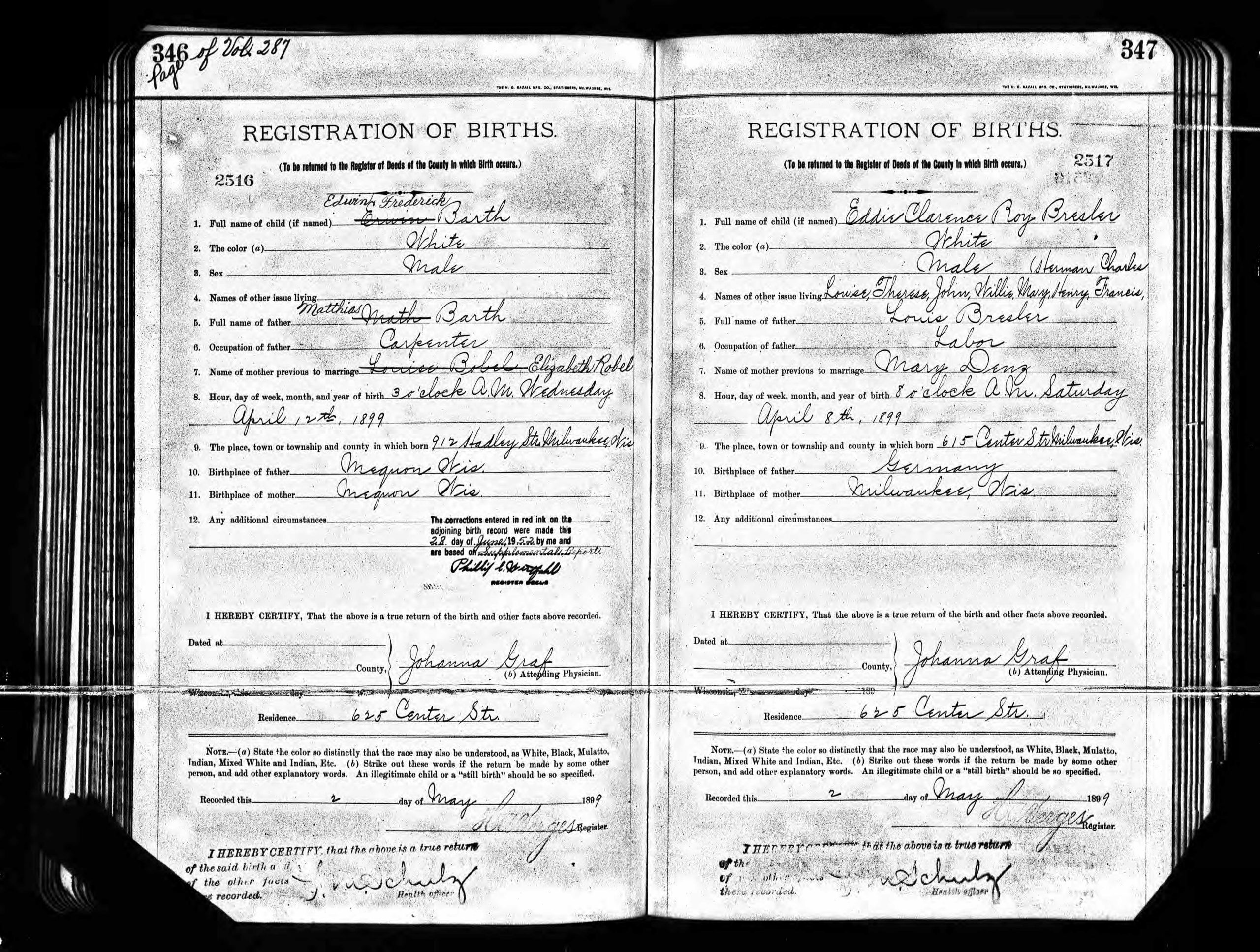 Eddie Clarence Roy Bresler. Milwaukee, Wisconsin, U.S., Births, 1839-1911. https://ancestryclassroom.com.