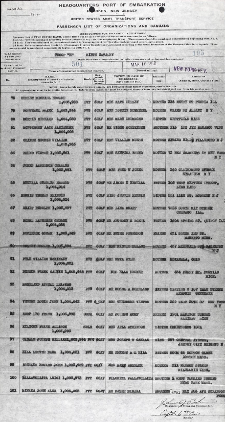 Edward Bresler enlisted in the U.S. Army on January 16, 1917, before the United States officially declared war on Germany. He trained at Jefferson Barracks in Missouri before being assigned to the 6th Cavalry, Troop H. On March 16, 1918, Edward left from New York aboard the Adriatic, arriving in France shortly thereafter. His last recorded field address places him in France with the 6th Cavalry, likely near Gievres and Vendome.