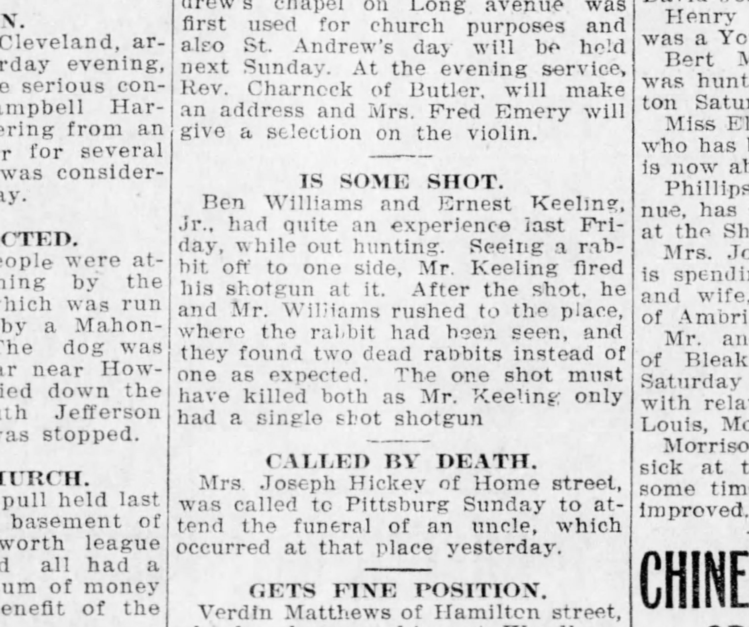 “Is Some Shot.” New Castle Herald [New Castle, PA], November 24, 1913. Newspapers.com (75945806).