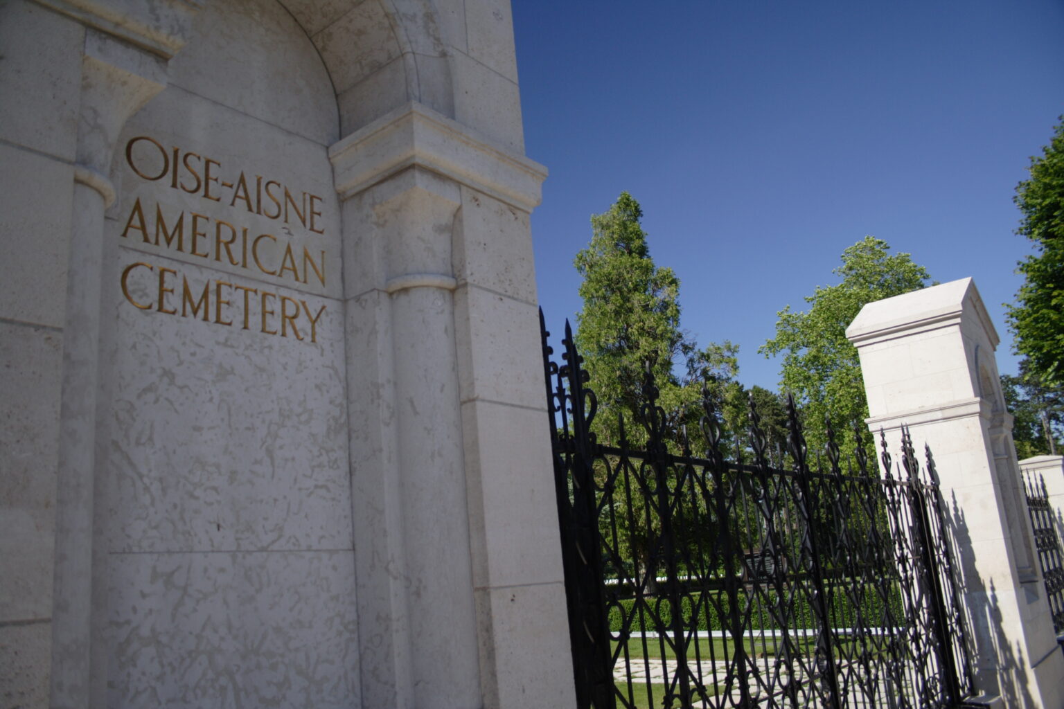 “The entrance gate includes a stone column with the cemetery name engraved on it.” American Battle Monuments Commission. Accessed April 23, 2025. https://www.abmc.gov/multimedia/the-entrance-gate-includes-a-stone-column-with-the-cemetery-name-engraved-on-it/.