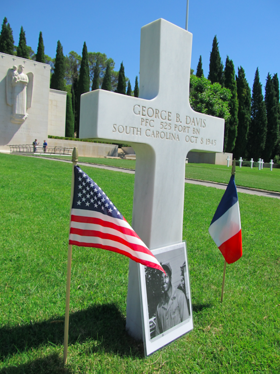 When notified of her husband’s death, Sennie found it appropriate to permit the U.S. Army to bury Davis in France with other soldiers. Davis was first buried in the temporary American military cemetery in Luynes, just north of Marseilles. Davis now rests eternally at Rhone American Cemetery in Draguignan, France.