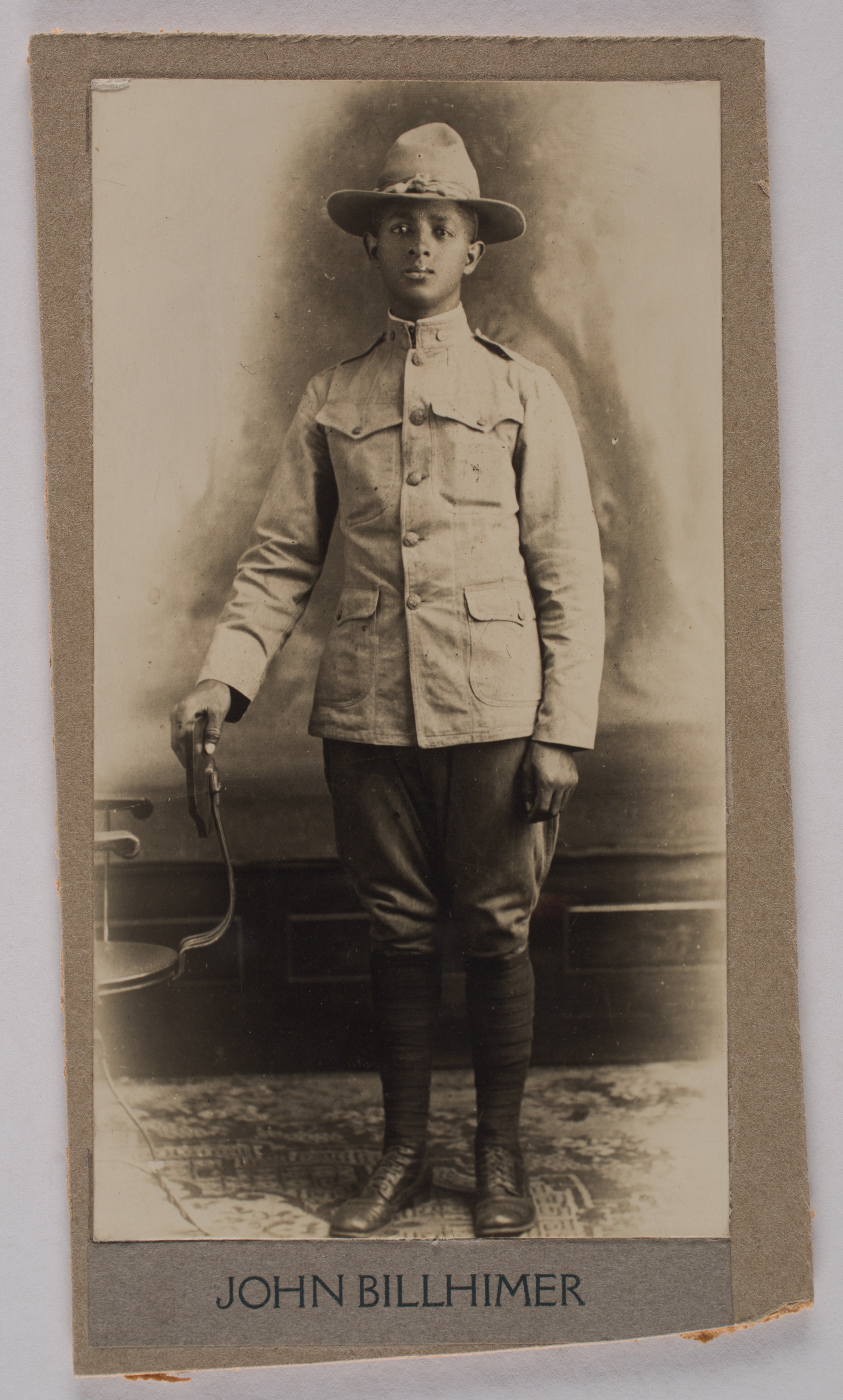 John Billhimer enlisted in the U.S. Army in June 1917. Young African American men in Chicago, eager to prove their loyalty as Americans in an age of racism and discrimination, signed up as volunteers to fight for freedom and democracy that often did not include them and their families. Private First Class John Billhimer was one of these men.