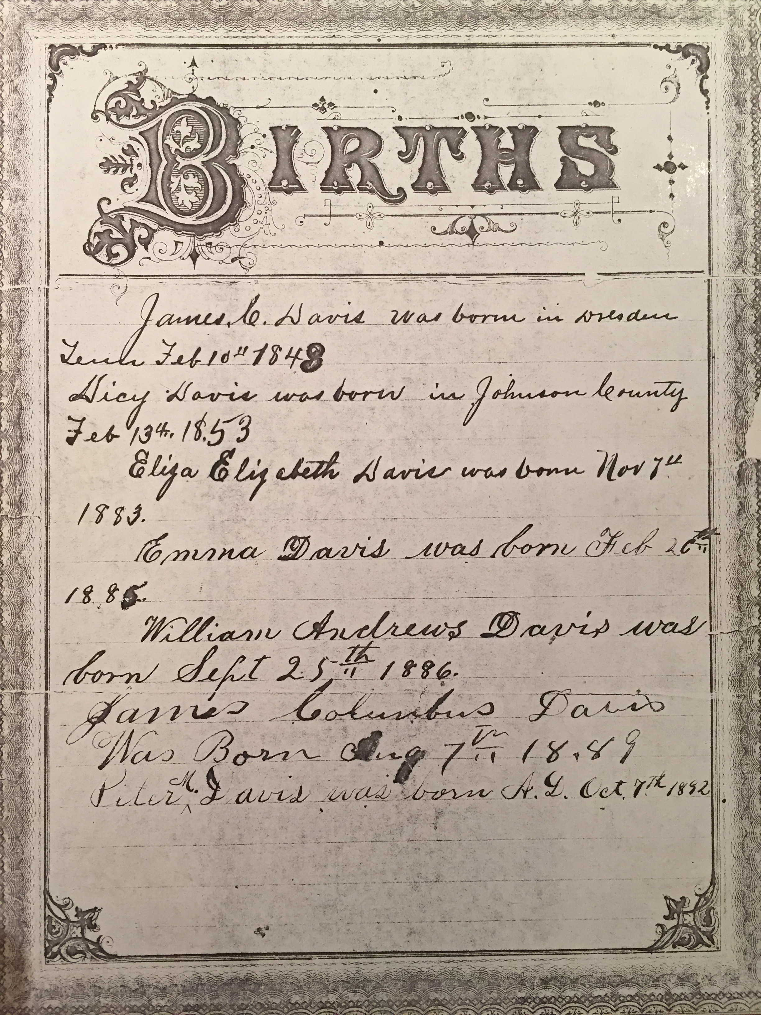 Davis Family Bible. 1892. Photograph. Courtesy Peter R. Davis, Jr.