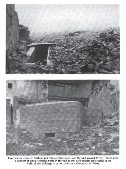By September 24 the 359th Infantry Brigade moved north to take part in the assault on the village of Prény. The Division History explained that the fighting was difficult. The infantry was unable to keep up pace with the rapid fire of the machine guns. This allowed the “German machine gunners to crawl out of their pill-boxes . . . and set up their guns to catch the advancing infantry.” In an October letter home, Davis noted that during this time “thay weare shooting the little 3 inch pretty fast and it made some nosie (sic).”