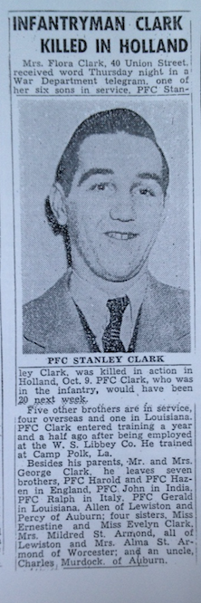 “Infantryman Clark Killed in Holland.” The Lewiston Daily Sun, October 27, 1944