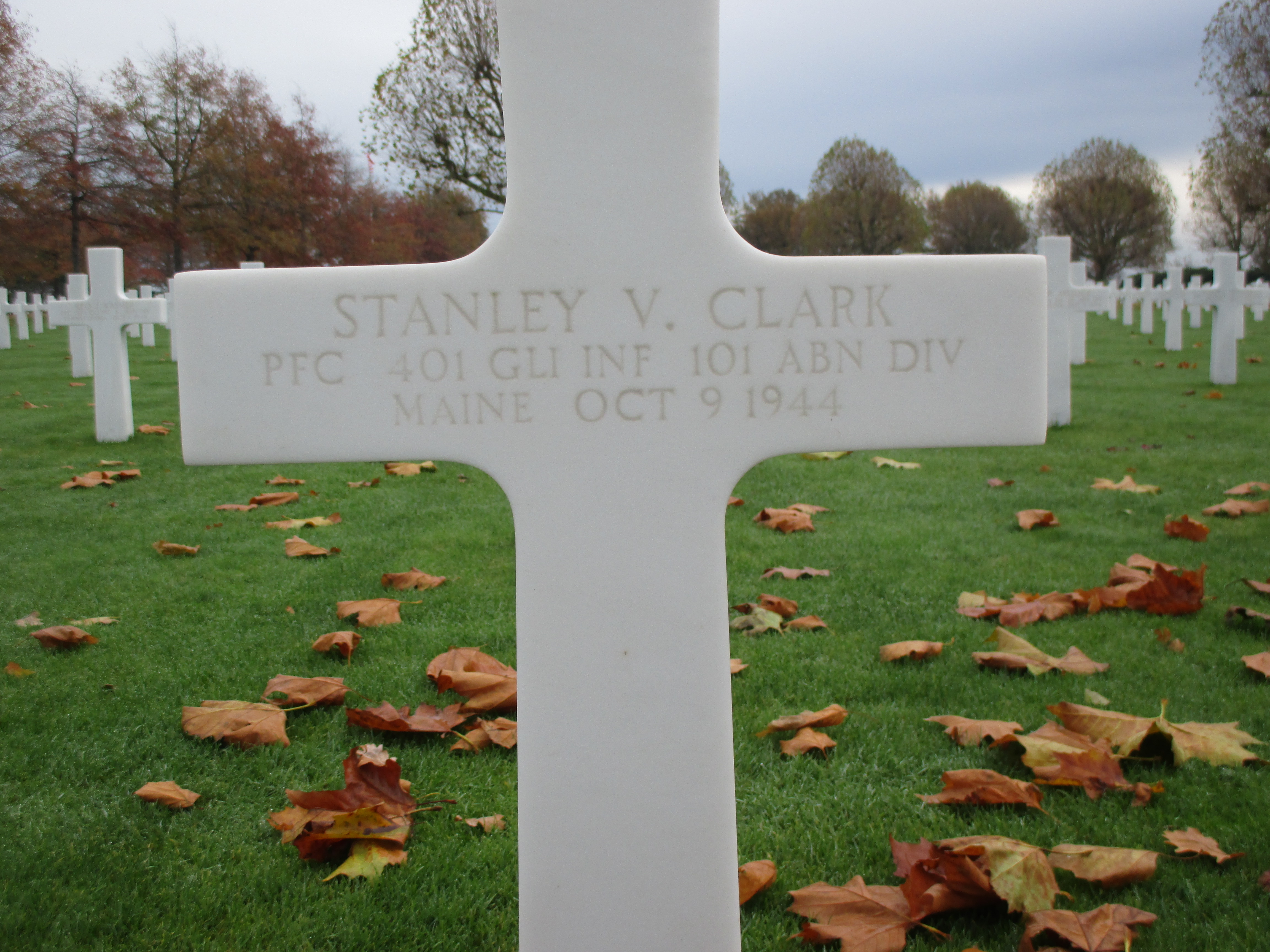 Stanley Clark’s body was buried in the temporary U.S. cemetery at Molenhoek, about four miles south of Nijmegen in the Netherlands. His mother learned of his death by telegram on the evening of October 16, 1944. She and Clark’s father chose to keep their son’s body in Holland. He received a Purple Heart posthumously for his service and was permanently buried in the American Netherlands Cemetery in Margraten in 1948.