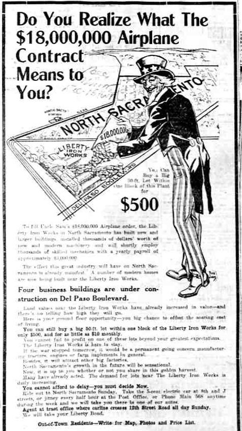 “Do You Realize What the $18,000,000 Airplane Contract Means to You?” The Sacramento Bee [Sacramento, CA], 1918. https://s3.amazonaws.com/pastperfectonline/images/museum_231/016/054_1983001sbpm00204.jpg.