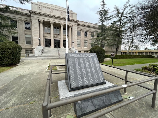 Bellows’s parents were given an American flag in honor of their son’s sacrifice by the War Department in 1924. In Woodland, California, “W. H. Bellows” is memorialized on a plaque in front of the Yolo County Courthouse as one of many who died in combat and lived in Yolo County. In Sacramento, his name is inscribed, along with the names of other Sacramentans memorialized on the wall above the foyer of the Sacramento Memorial Auditorium, commemorating all who died in the Spanish-American War and World War I. Today, the Yolo County Courthouse and the Sacramento Memorial Auditorium are listed on the National Register of Historic Places. Private First Class William H. Bellows, Jr., indeed succeeded in making his mark.
