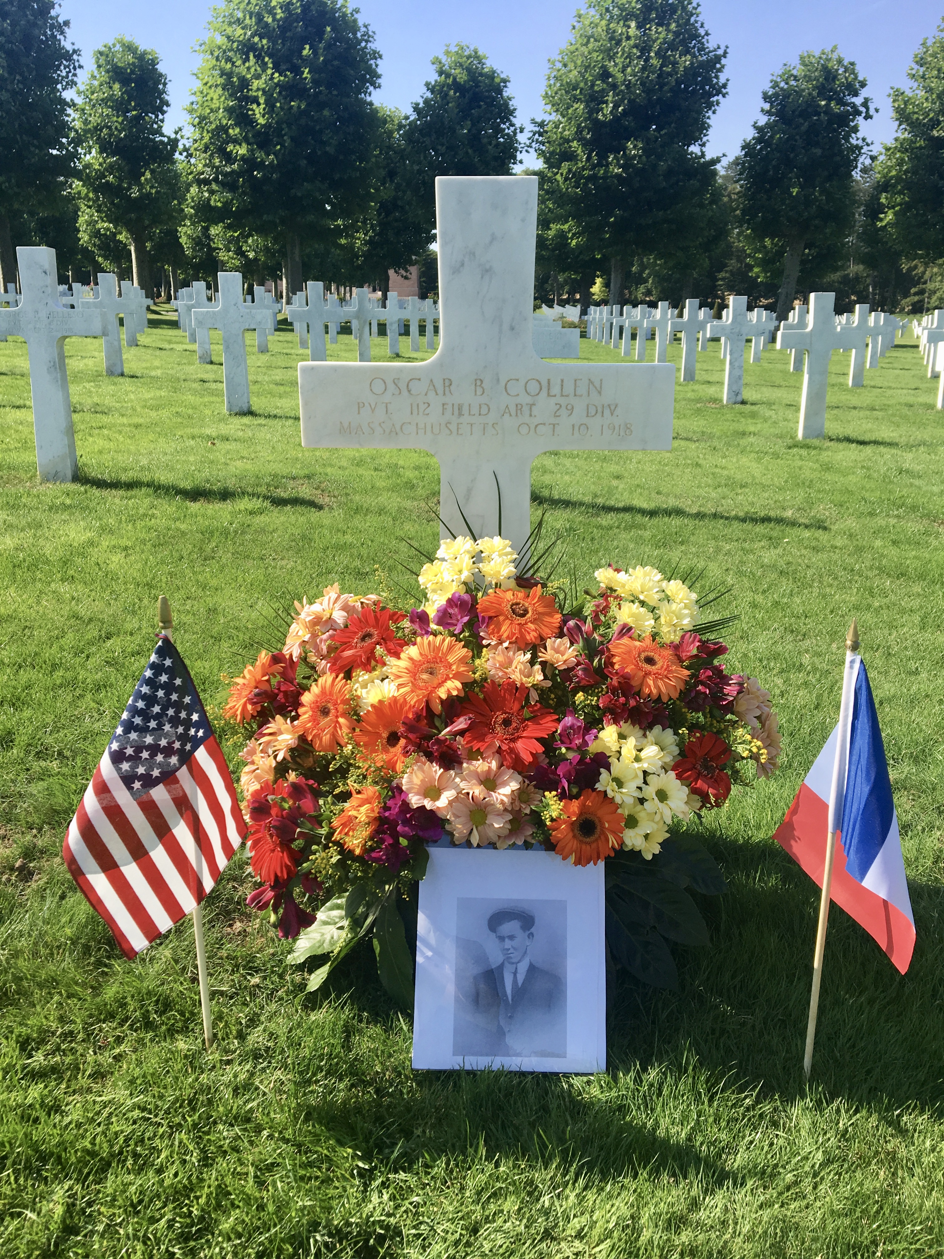 After an initial request to have their son’s remains repatriated to the United States, his family decided it was best for him to be buried abroad, and he is interred at the Oise-Aine American Cemetery. Though his mother did not make the Gold Star Mothers Pilgrimage, his descendants have visited over the years. On Memorial Day 1934, Orange, Massachusetts dedicated its war memorial with the eleven names of its citizens who had given their lives in the Great War. With the inscription, “It Shall Not Be Again,” the Peace Memorial, as it came to be known, remains a prominent marker in the center of town.