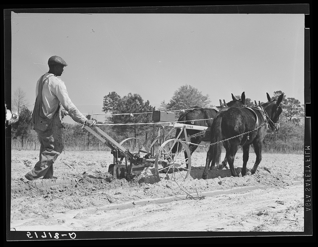 Wolcott, Marion Post. Mr. Charlie McGuire (tenant purchase borrower) with his two mules and cultivator. Pike County, Alabama. Photograph. April, 1939. Library of Congress Prints (2017800940). https://www.loc.gov/item/2017800940/.