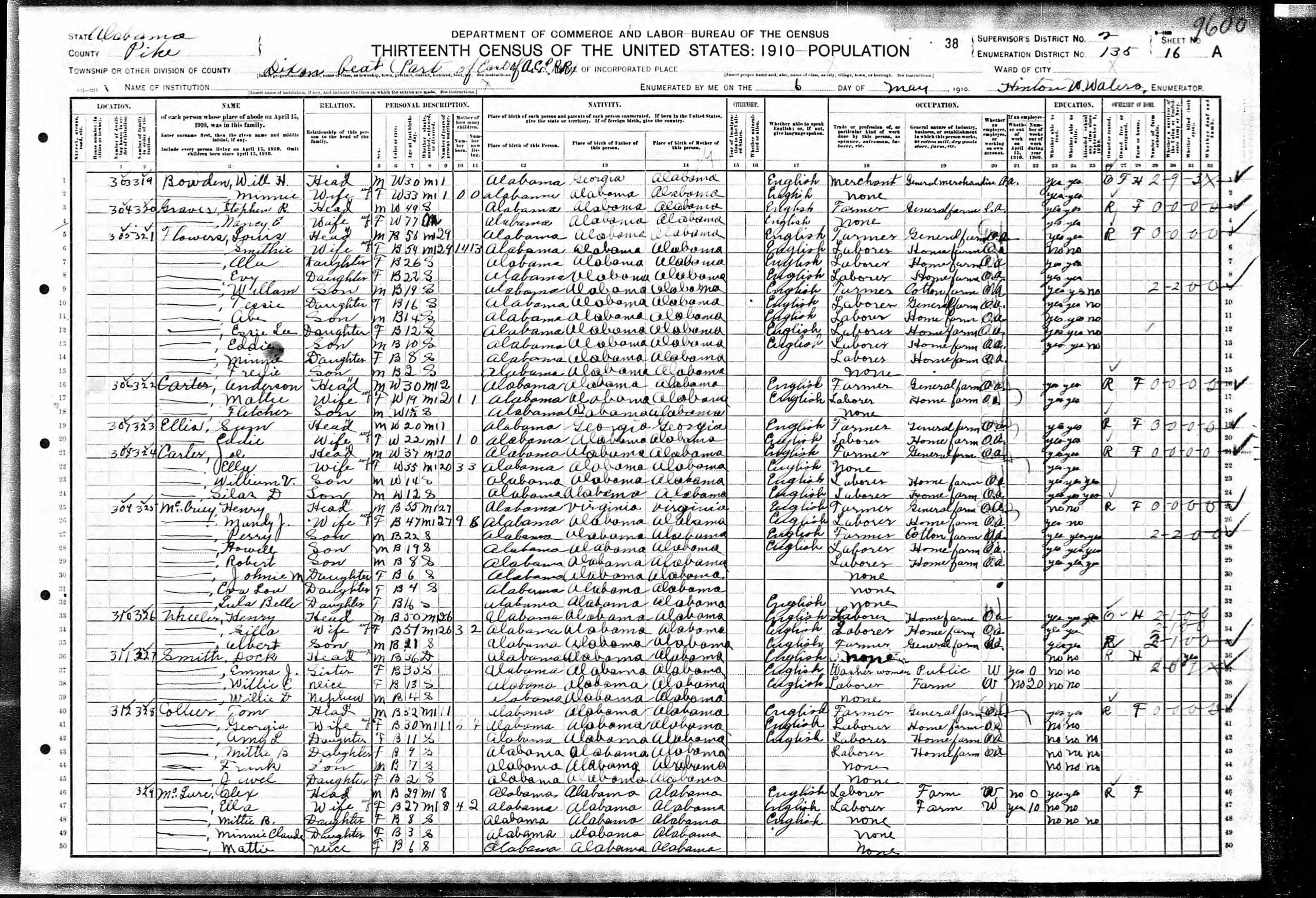 Alabama. Pike County. 1910 U.S. Census. Digital images. https://ancestry.com.