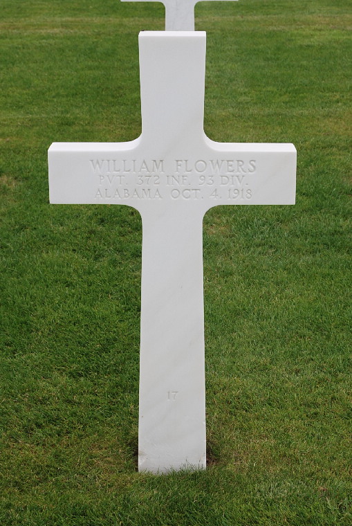 Private Flowers’ family chose to leave his body in France to be buried in the Meuse-Argonne American Cemetery. At the end of the war, the entire 372nd Infantry Regiment received the Croix de Guerre with Palm for their dedicated service alongside French forces in the Meuse-Argonne Campaign.