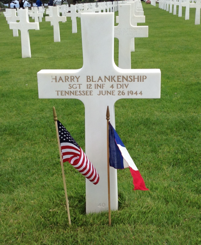 Blankenship was originally buried in the temporary American military cemetery in St. Mère-Église, France. In 1948, Sergeant Blankenship’s brother, Earl, made the decision to have his remains disinterred from the St. Mère-Église and interred at the new Normandy American Cemetery. The cemetery is fittingly located near a bluff overlooking Omaha Beach.