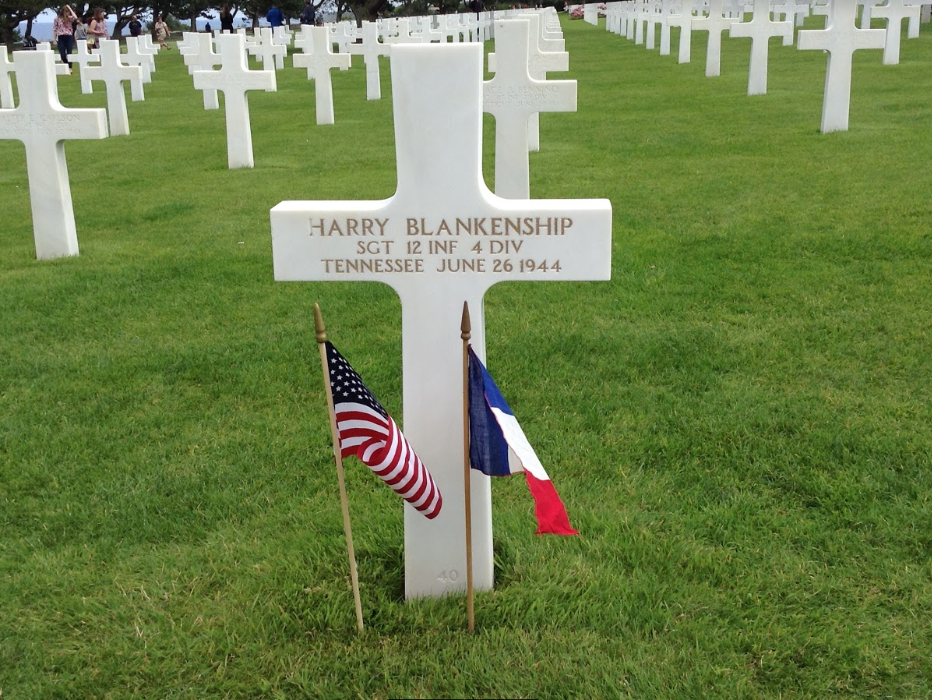 Blankenship was originally buried in the temporary American military cemetery in St. Mère-Église, France. In 1948, Sergeant Blankenship’s brother, Earl, made the decision to have his remains disinterred from the St. Mère-Église and interred at the new Normandy American Cemetery. The cemetery is fittingly located near a bluff overlooking Omaha Beach.