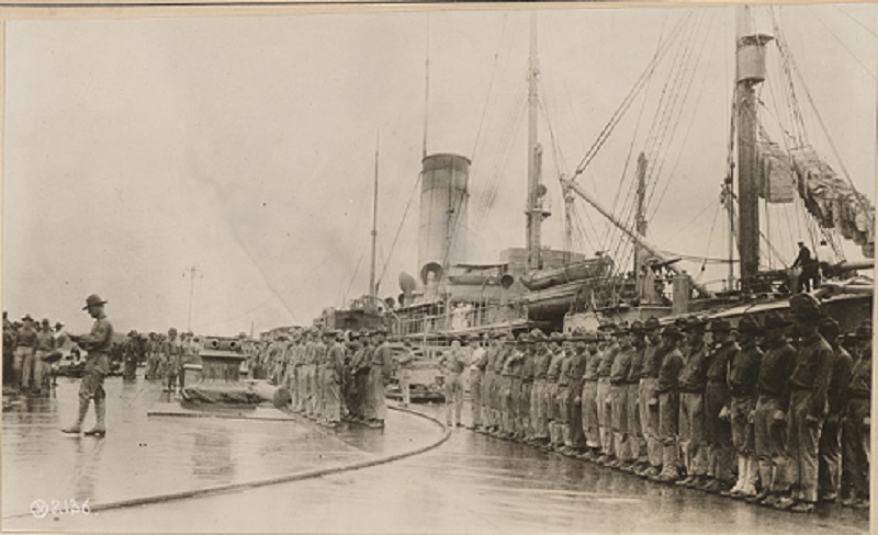 Disembarkation at French port of 5th Regt. Marines- June 1917…. Photograph. June 1917. National Archives and Records Administration (111-SC-002136). Image.