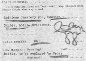After Busch’s death, he was originally buried at American Cemetery #88, close to Base Hospital #34 in Nantes. According to records, his grave was originally marked with only a bottle. After the war, he was moved to Oise-Aisne American Cemetery which was a temporary cemetery for the Aisne-Marne offensive. Busch’s parents decided to leave his body overseas if the cemetery, and his grave, would be properly tended. Busch’s final resting place is in plot C, row 16, grave 32.
