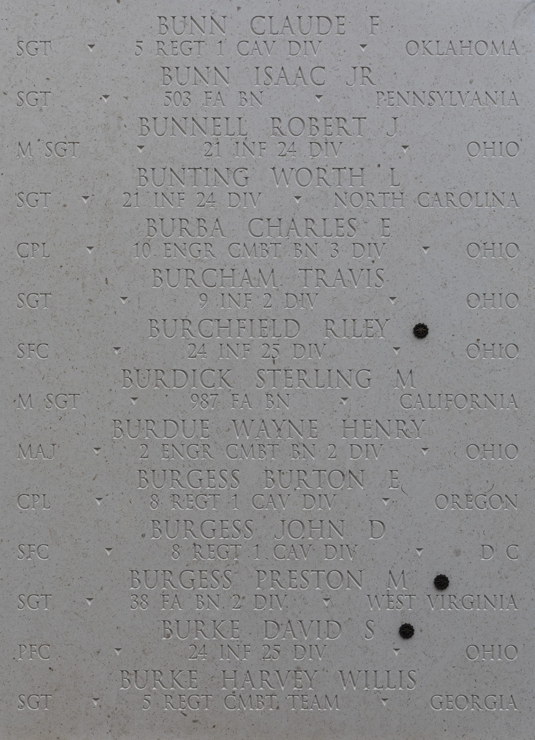 Corporal Worth Lamar Bunting’s name is inscribed on the Honolulu Memorial at the National Memorial Cemetery of the Pacific, Honolulu, Hawaiʻi.