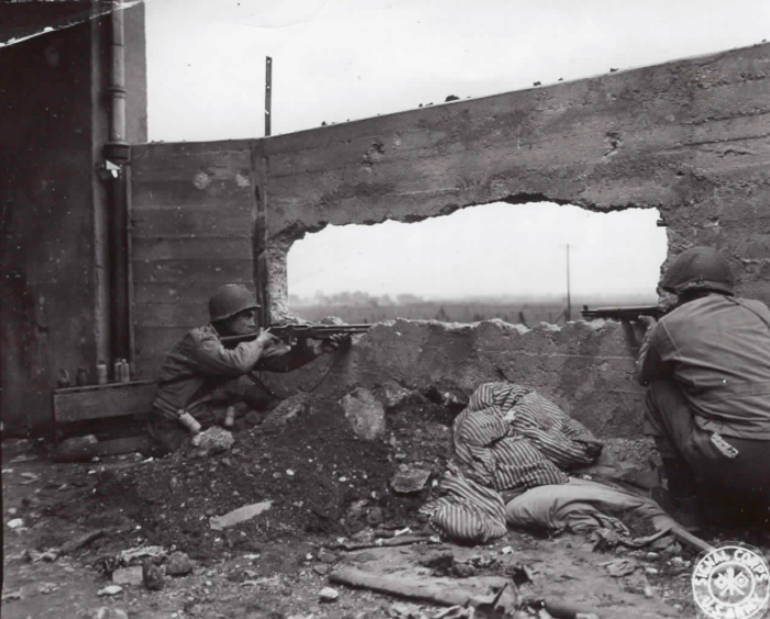 PFC Lawrence Hoyle, Left…Near Maizeres Les Metz France. Photograph. August 6, 1944. National Archives and Records Administration (111-SC-196133). Image