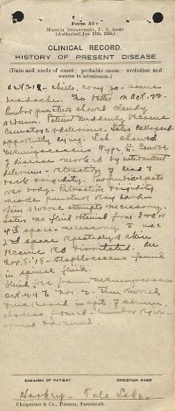 On October 21, 1918, Harkey was admitted to the hospital with chills and a headache. Over the following weeks, she endured a prolonged fever and extreme pain while the doctors administered numerous unsuccessful treatments.