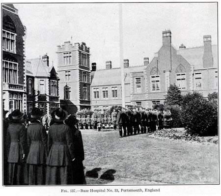 The group settled at the rest camp, Knotty Ash, for two days and then was transferred to the American rest camp, Winnall Down in Winchester, where they waited for their permanent assignment until June 3, 1918. During this time, the majority of the personnel were assigned to local hospitals and camps in England, and on June 3, the unit was assigned its station in Portsmouth, England. They took over a section of the Fifth Southern General Hospital, known as the Fawcett Road section.